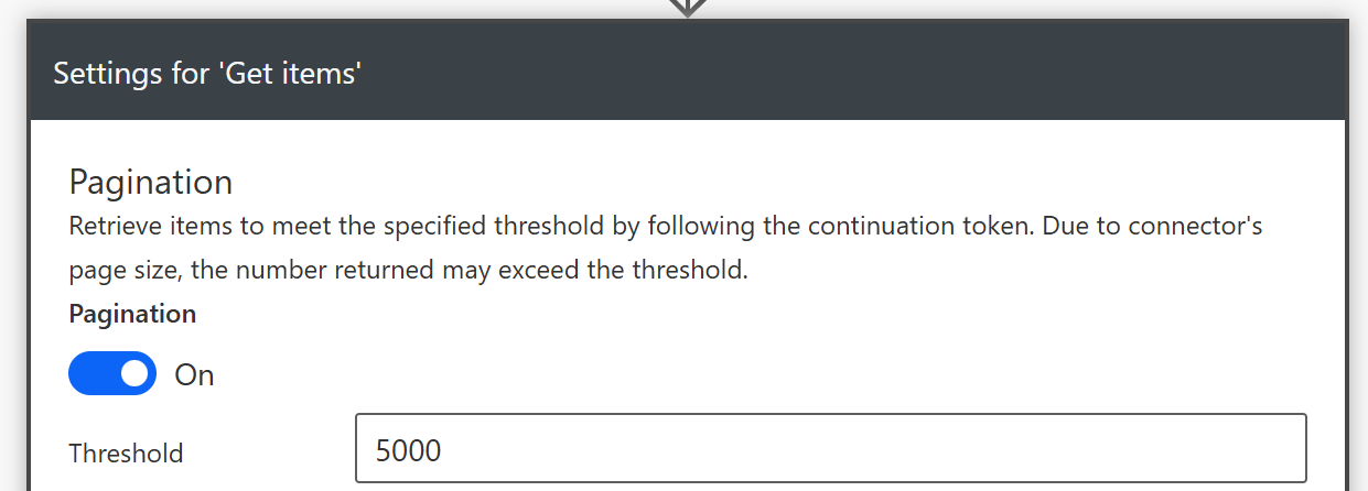 Remember to turn on pagination with a 5,000 items threshold so that the workflow is capped at 100 results.